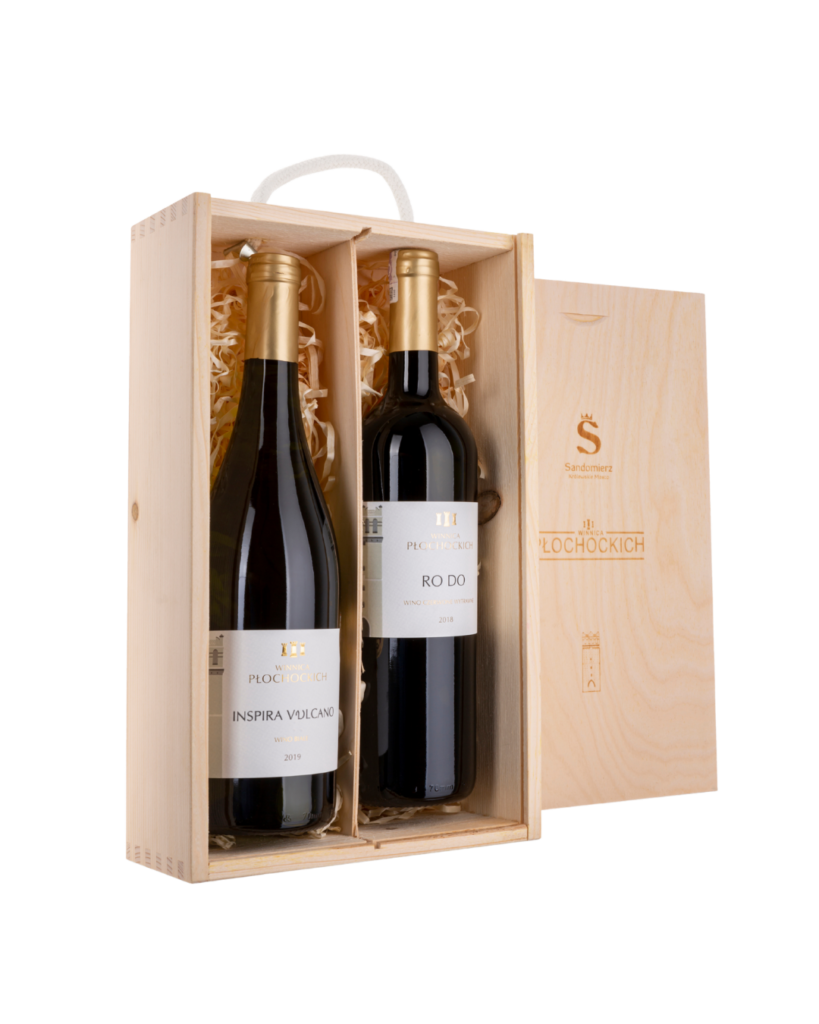 Przygotowujemy eleganckie drewniane skrzynki z logo, mieszczące 1, 2 lub 3 butelki wina, które można dowolnie skomponować spośród win dostępnych w naszej ofercie.